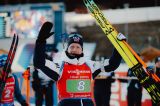Nel primo giro dell'ultima frazione si scatenano Johannes Boe e Giacomel; il norvegese si presenta con un minuto di vantaggio al poligono a terra e non sbaglia mentre Fillon Maillet deve usare una ricarica. L'italiano recupera 5 secondi a Horn e, nonostante una ricarica, esce a 40 secondi da Horn (3 ricariche) terzo con Samuelsson con una ricarica.