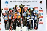 Come detto medaglia di bronzo per l'Italia schieratasi con Lisa Vittozzi, Karin Oberhofer, Nicole Gontier e Dorothea Wierer. Per le azzurre le cose si sono messe bene sin dal lancio in quanto Vittozzi, trovatasi a ricoprire questo ruolo per la prima volta in carriera, ha cambiato nelle posizioni di testa. Oberhofer ha tenuto in quota il team, quindi Gontier ha fatto il suo dovere riducendo al minimo le ricariche. Wierer infine si è dimostrata molto solida, scavalcando Ekaterina Shumilova e arrendendosi solo nel finale a Dorin Habert.