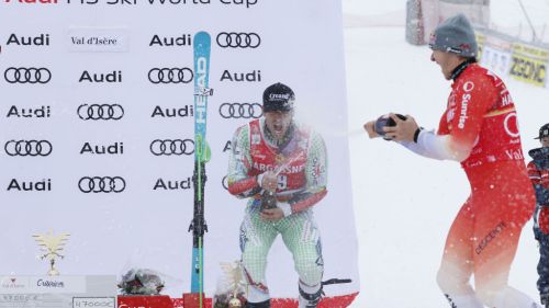 Un lampo di Vinatzer e poco altro nell'Italgigante di Val d'Isère. "Mi tengo il baffo... per lo slalom"
