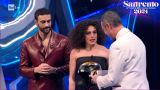 Poco dopo le 23.00 della prima serata della 74esima edizione del Festival, la fuoriclasse azzurra è diventata la prima sciatrice donna italiana a scendere le scale del palco dell'Ariston, consegnando il suo casco da tigre ad Amadeus e Mengoni. "Gli sci erano un po' ingombranti, avevo un po' paura di questa scalinata...".