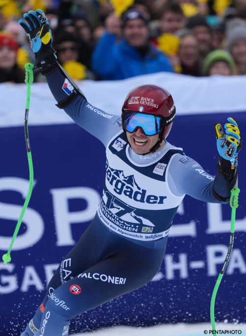 In quello stesso weekend della Val Gardena, nell'ultimo giorno di gare però ho preso un brutto colpo ad un ginocchio e il weekend successivo a Bormio non sono riuscito a sciare sui miei livelli. Però quelle gare di Bormio mi sono servite molto perché, anche se ho fatto fatica, ho capito che per fare il risultato, dovevo rischiare di più, sebbene dopo due infortuni non sia semplice. A inizio gennaio sono riuscito a trovare più fiducia, un coraggio in più perché sentivo che potevo giocarmi il podio o comunque arrivarci molto vicino. E infatti così è stato, perché a Wengen in superG ho fatto una buonissima gara e sono arrivato quinto a pochi centesimi dal podio, ed era il mio miglior risultato in Coppa del Mondo. Quel risultato mi ha dato molta fiducia, ho pensato che ce la potevo fare e a Garmisch finalmente sono riuscito a mettere in campo una manche senza errori da cima in fondo. È stato veramente bello quando ho visto la luce verde al traguardo.