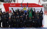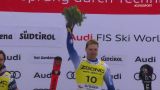 Mattia Casse sul podio in Val Gardena con l'inno di Mameli.