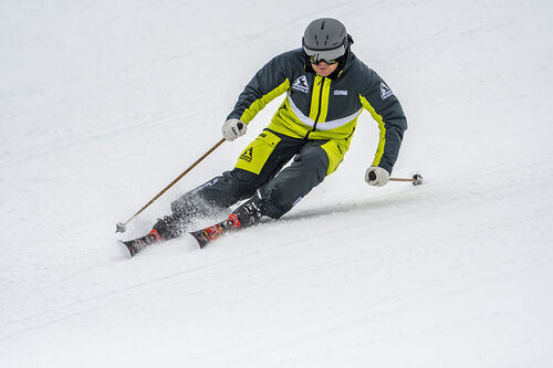 Nel TEST IN PISTA Mattasoglio e Rossi confermano le sensazioni della prova a secco, con la facilità in ingresso curva agevolata dalle plastiche costruite in blocco unico. Bertolini ribadisce la comodità dello scarpone per chi non ha ambizioni di performance. Magri non è molto soddisfatto, buono l’appoggio frontale del gambetto, negativo il piede largo in pianta. Marinetti ribadisce il comfort: a livelli bassi si comporta discretamente, aumentando l’intensità fatica a inizio curva ed in fase d’inclinazione.