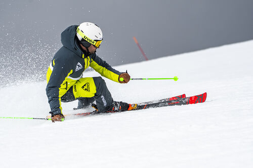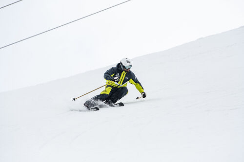 Nel TEST IN PISTA, Marinelli apprezza la precisione in curva, un punto a sfavore: ad inizio curva cede nel gambetto. Mattasoglio conferma il comfort della prova a secco. A neve che comincia a mollare fa fatica a trasmettere le giuste sensazioni soprattutto in velocità. Francesco Bertolini lo trova avvolgente e immediato sia in entrata che in uscita di curva. Giordano Magri conferma la comodità, lo trova anche preciso e stabile. Difetta con un flex più morbido di quanto dichiarato. Lo consiglia a sciatori di livello L 5/7.