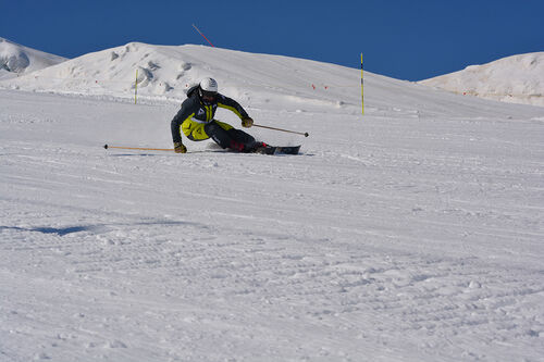 La spatola è leggera e rockerata e dà qualche incertezza in fase di inserimento curva, soprattutto al bravo sciatore che è abituato a lavorare di più fin dai primi centimetri e anche per chi cerca un appoggio maggiore ad inizio curva. Lo sciatore che, di contro, non padroneggia ancora perfettamente la conduzione oppure che ha bisogno di un aiuto a inizio curva si troverà a proprio agio, riuscendo a gestire l’inversione con molta facilità.