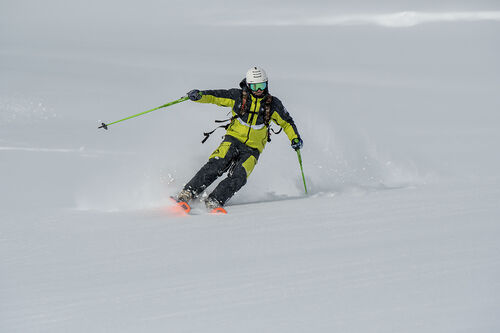 Può essere montato con un attacco tradizionale da sci alpino (solo discesa) o con un set up da skitouring con un attacchino da freeride.