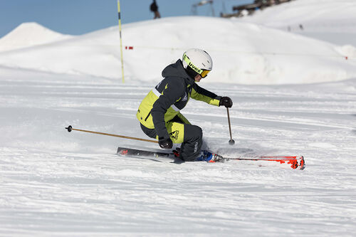 Il nuovo sci piace in molti frangenti, si avvicina molto come sensazioni a un GS vero e proprio ed è quindi indicato per chi vuole iniziare a girare tra i pali o ritrovare il feeling con essi dopo qualche anno fuori dai giochi. “Ha una conduzione pulita, molto precisa ed è performante su fondo duro” ci racconta Isabel Anghilante, che continua: “è uno sci divertente, molto stabile anche se un po’ pesante” chiude l’allenatrice.