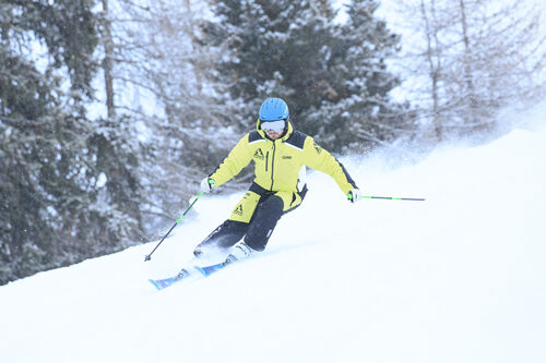 Il nuovo Dynastar, provato in misura 174cm, riesce bene in tutti e tre gli archi di curva, ha un ingresso leggero e da metà curva in poi mantiene sempre una buona solidità.