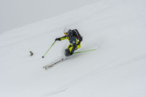 Consigliato con un set up da skitouring o da scialpinismo per usarlo anche durante le risalite con le pelli sintetiche.