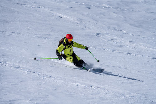 Sci leggerissimo, perfetto per gite lunghe di scialpinismo, anche alle basse velocità è molto facile da girare, il commento a caldo dei tester Leonardo Imbimbo e Lorenzo Bregani.
