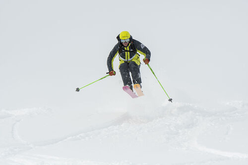 Può essere montato con attacchi tradizionali da sci alpino (solo discesa) o con un set up da skitouring con attacchino da freeride o scialpinismo per usarlo durante le lunghe ascese alla ricerca dei versanti ottimali.