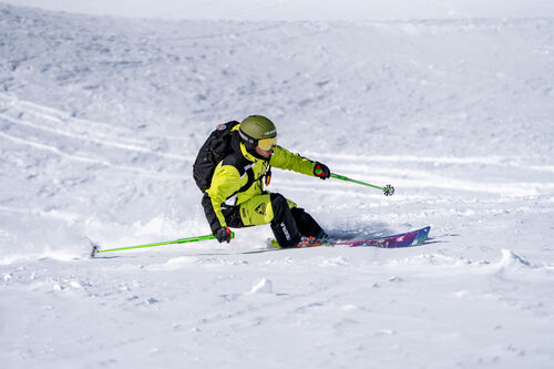 Sci largo, performante e ben strutturato il commento a caldo di Andrea Bergamasco che aggiunge come lo sci sia bello nelle giornate di powder, risultando reattivo e veloce, stabile alle alte velocità e senza difetti o punti deboli.