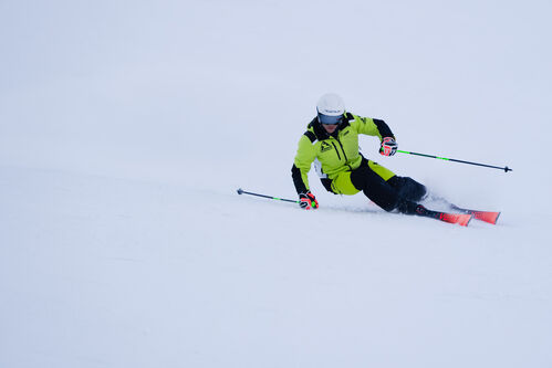 Il pacchetto viene completato alla perfezione, oltre che dalla costruzione 3D.Glass, dai due strati di Titanal su tutto lo sci e dalla collaudata anima in legno multistrato, anche dal nuovo attacco R-Motion 3 GW. La piastra accorciata in combinazione con uno schema di foratura più ampio consente una trasmissione dell’energia più diretta e più potente e permette cambi di spigolo più rapidi. Il clou è però rappresentato dalle due viti posteriori che non sono più fissate e che consentono quindi all’attacco di scorrere liberamente, permettendo allo sci di muoversi armoniosamente su tutta la linea di piegatura senza venire bloccato e con una migliore presa di spigolo.
