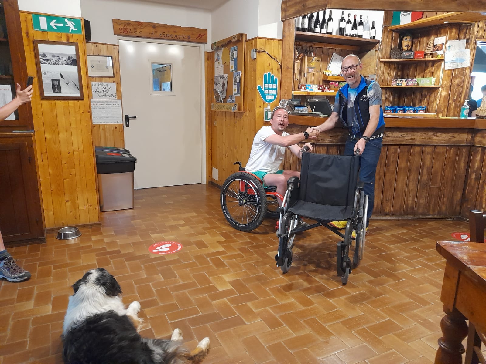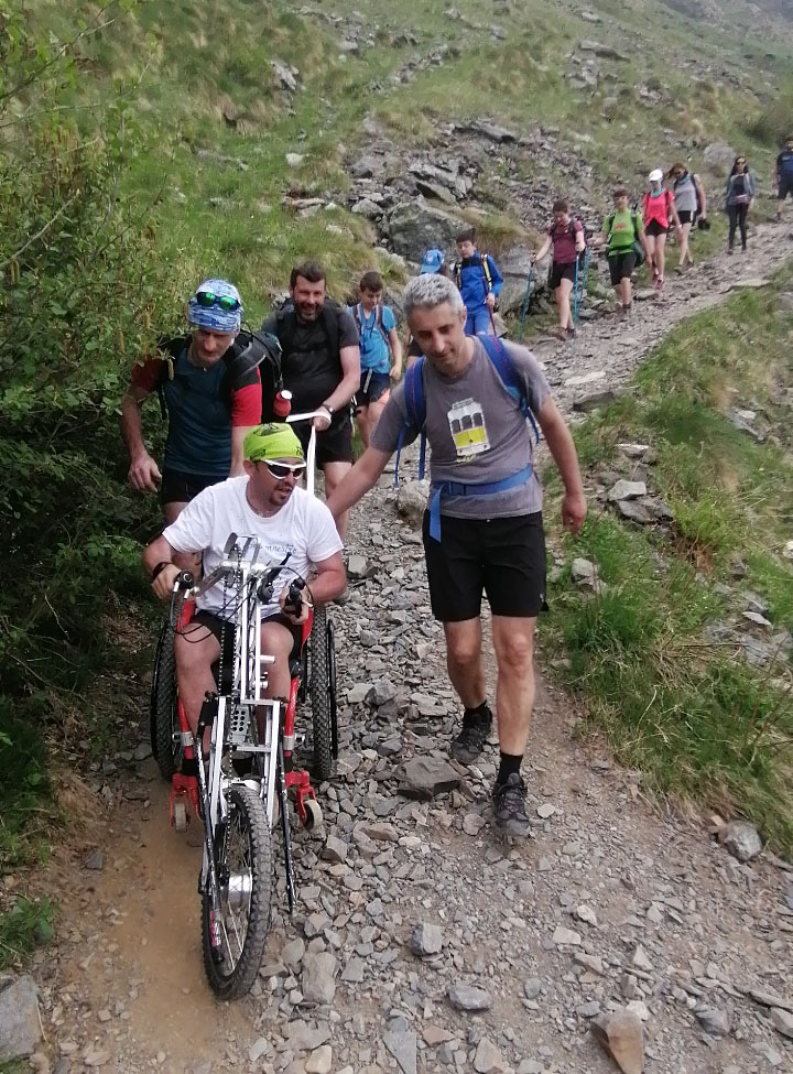 A consegnare la sedia a rotelle è stata una delegazione dell'associazione capitanata da Mauro Bernardi, maestro di sci per disabili e segretario e Tesoriere dell' organizzazione di volontariato. Mauro, accompagnato dalla moglie Claudia e dal figlio Pietro ed aiutato dagli amici Mauro e Silvia, Patrizio e Giusy, Francesco, Matteo, Christian e Chiara, e dai più giovani del gruppo Erika, Alice, Diego e Lia, ha percorso il sentiero, direzione Curò, da Valbondione in 3 ore e 10 minuti a bordo di una handbike (una bicicletta speciale per persone disabili) pedalando con le braccia.