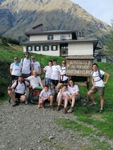 La fatica era evidente, ma la nobile finalità ha fatto superare tutte le difficoltà, e con gioia e non poca emozione, il gruppo ha raggiunto il rifugio alle 12.40. Il progetto LA MONTAGNA PER TUTTI ENJOY, ideato nel 2016 da un gruppo di atleti disabili dell'associazione Enjoyski, ha permesso di rendere la montagna un pó più accessibile alle persone con disabilità motoria.