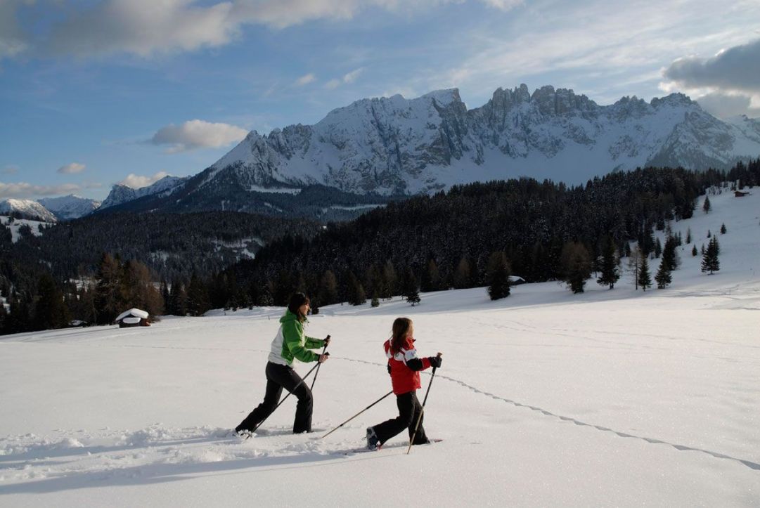 A questo, si aggiungono le piste da fondo sotto il Catinaccio e un’ampia rete di sentieri, di diversi livelli di difficoltà, per tutti gli appassionati delle ciaspole, che possono contare in gite guidate attraverso l’incantevole paesaggio ammantato di bianco. Per chi invece preferisce le tradizionali passeggiate a “piede libero” tra le montagne, il clima mite favorisce svariate possibilità lontano dalle affollate piste da sci. I sentieri percorribili durante l’inverno offrono un’esperienza eccezionale per lasciarsi incantare dalle escursioni panoramiche e di interesse storico culturale in mezzo ai boschi e tra i masi, testando la fama romantica di Carezza, ai piedi del magico Catinaccio che, al tramonto, si tinge di rosso, dando l’impressione che tutto intorno persino il frenetico mondo dello sci si fermi per ammirare uno spettacolo tanto raro.