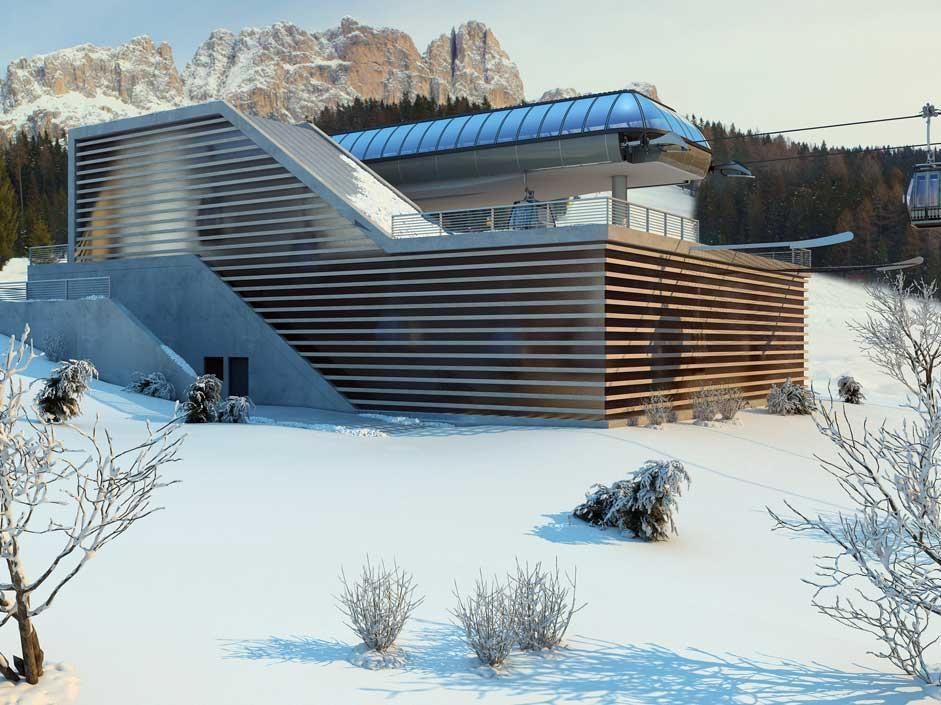 Anche in Val Gardena nuova cabinovia a 10 posti ad agganciamento automatico con stazione intermedia “Dantercepies” . Lo stesso dicasi in Val di Fassa dove è stata costruita la cabinovia “Laurin 1”, sempre a 10 posti, da Nova Levante a Malga Frommer, quale collegamento tra il centro abitato e l’area sciistica Carezza.