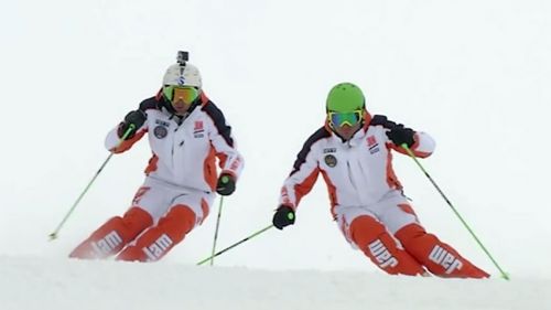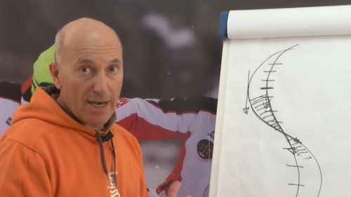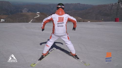 Il tennis e una sequenza di curve in pista - INT.01 - Corso di sci intermedio
