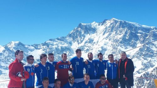 Macugnaga, sulle nevi del Monte Moro partita di calcio Italia - Svizzera