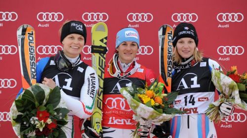 Federica Brignone e Werner Heel sul podio