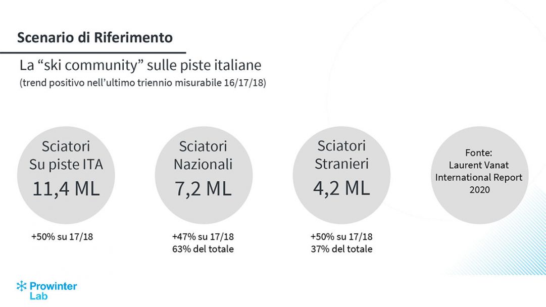 Concentrandosi sulla stagione invernale 2019/20, i dati rivelano un incremento del pubblico di sciatori presenti sui comprensori italiani. «Nonostante la stagione sia finita in anticipo a causa della pandemia mondiale possiamo affermare che l’inverno è andato bene, soprattutto sull’arco alpino. Meno sugli Appennini, data la carenza di neve iniziale” – dichiara Geraldine Coccagna, Exhibition Manager di Prowinter – Gli sciatori che hanno trascorso le giornate in pista sono stati più di 11 milioni, segnando un aumento del 50% rispetto agli scorsi inverni.