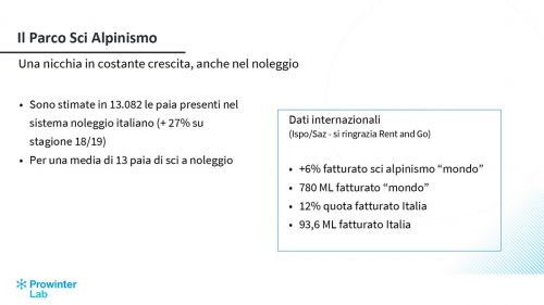 I dati relativi all’attività di noleggio durante l’inverno 2019/2020 sono stati esposti da Alfredo Tradati, coordinatore di Prowinter Lab, l’equipe designata da Fiera Bolzano che ha condotto la ricerca, e sono il frutto di un quadriennio di analisi.