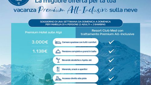 Nelle stazioni sciistiche più rinomate di Italia, Francia e Svizzera, sorgono i Resort Club Med che propongono pacchetti Premium All Inclusive per offrire una vacanza sulla neve al top.