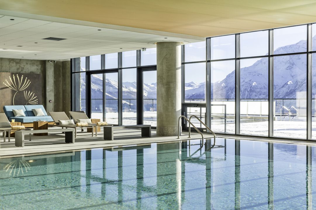 Dopo una giornata sugli sci, potrete rilassarvi nella piscina coperta, con vasca anche per bambini, e con vista sulle montagne oppure nella Spa "Cinq Mondes" di 650mq che comprende un hammam ad accesso gratuito (solo per adulti) e una sala relax con vista sulla Valle Tarentaise.