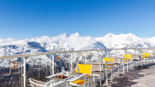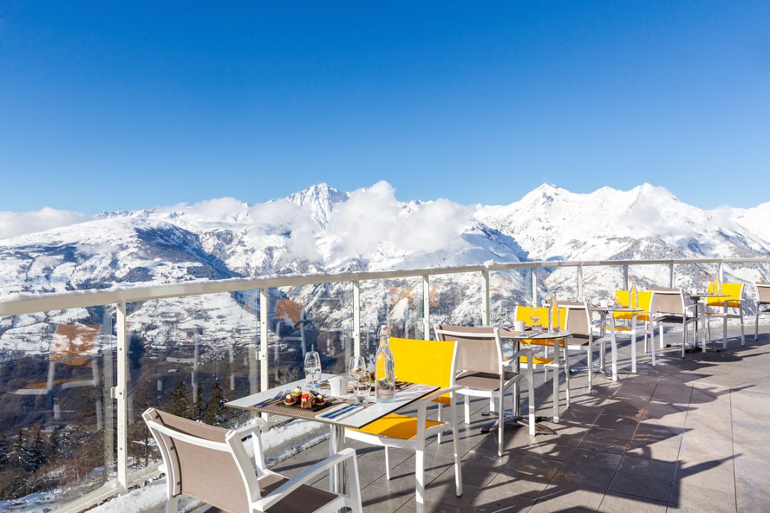 Il primo è situato a 1800 metri d’altezza ed è una struttura in vetro, legno e pietra grezza con vista sulla valle della Tarentaise e il Monte Bianco. Qui potrete accedere alla Gourmet Lounge, a 1790 metri d’altezza, e godervi un’esperienza culinaria esclusiva con servizio al tavolo davanti alle montagne innevate.