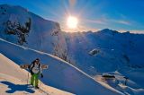 Siamo in Val di Sole per l'esattezza in Val di Pejo per questa panoramica cima di 3612m che domina su tutta la Val di Pejo. La discesa è una breve linea di sci ripido raggiungibile con l'ausilio degli impianti sciistisici.Freeride Touring a Bella Valletta 2.810m - Uno sguardo lungo il confine Italia-Francia