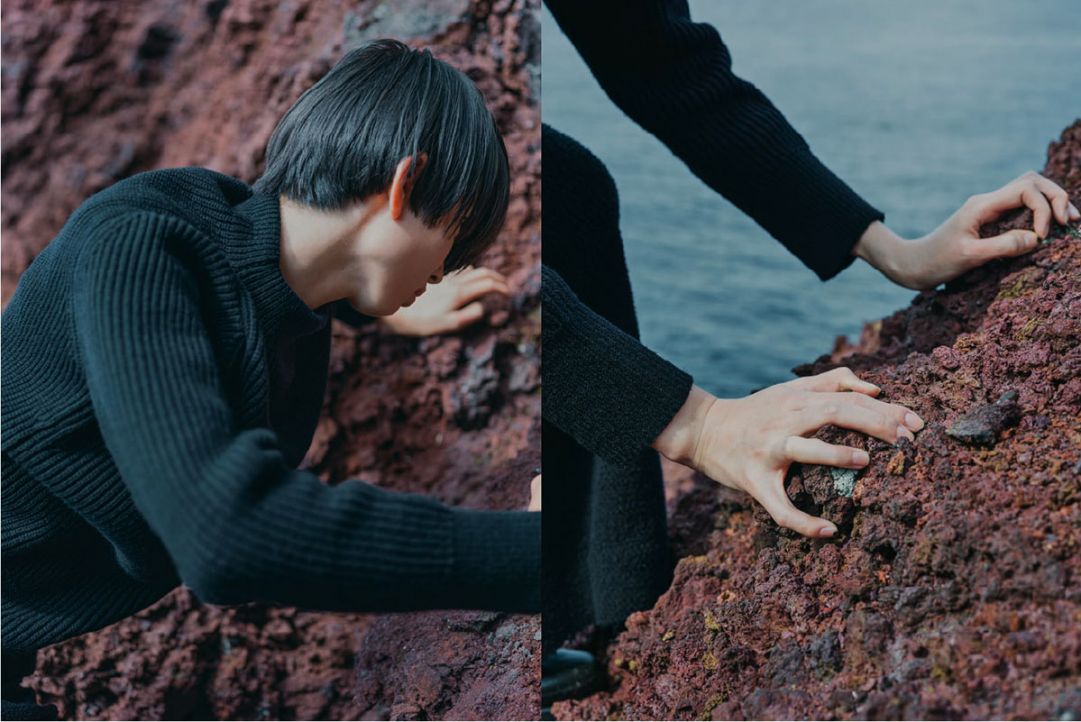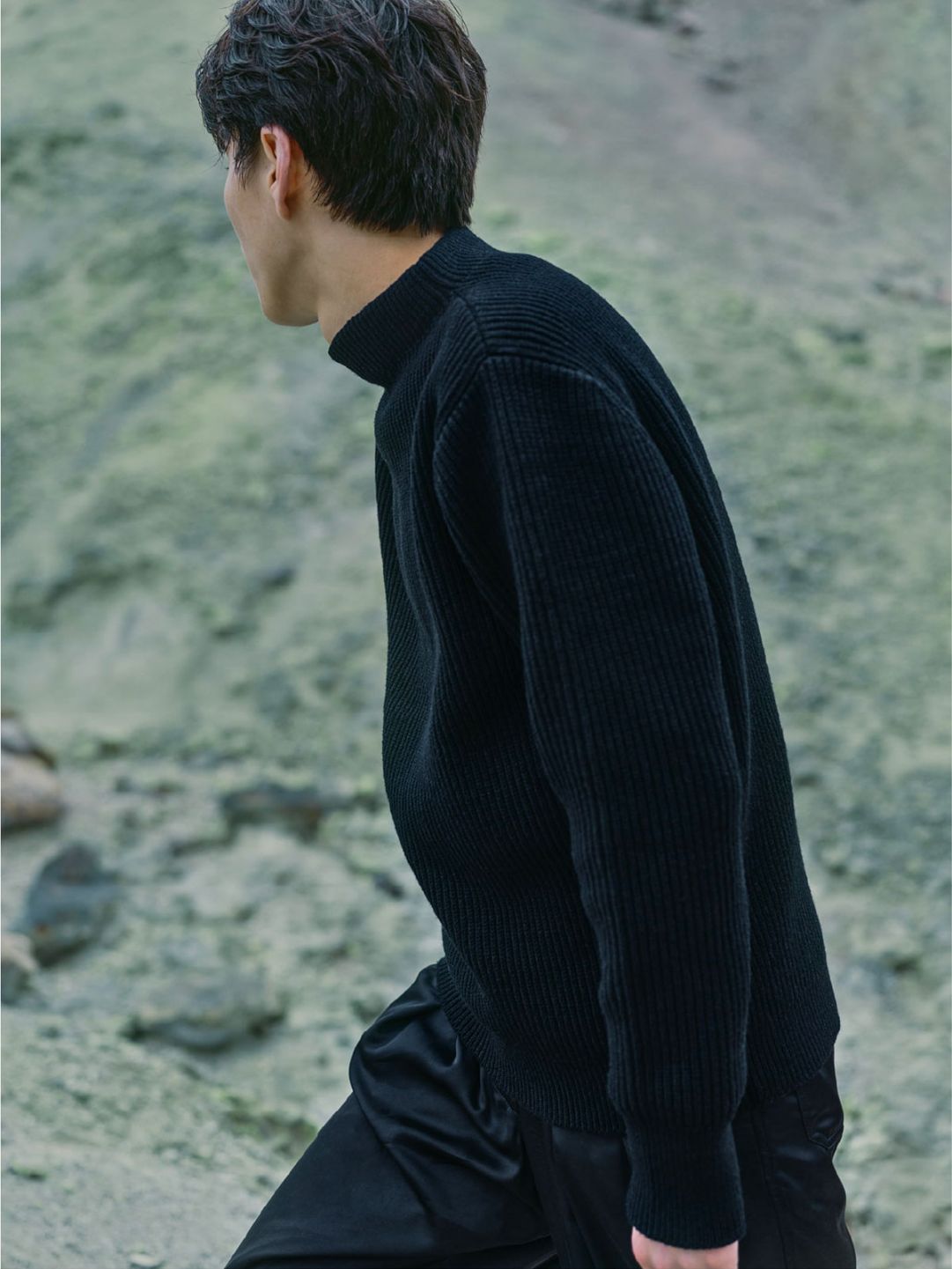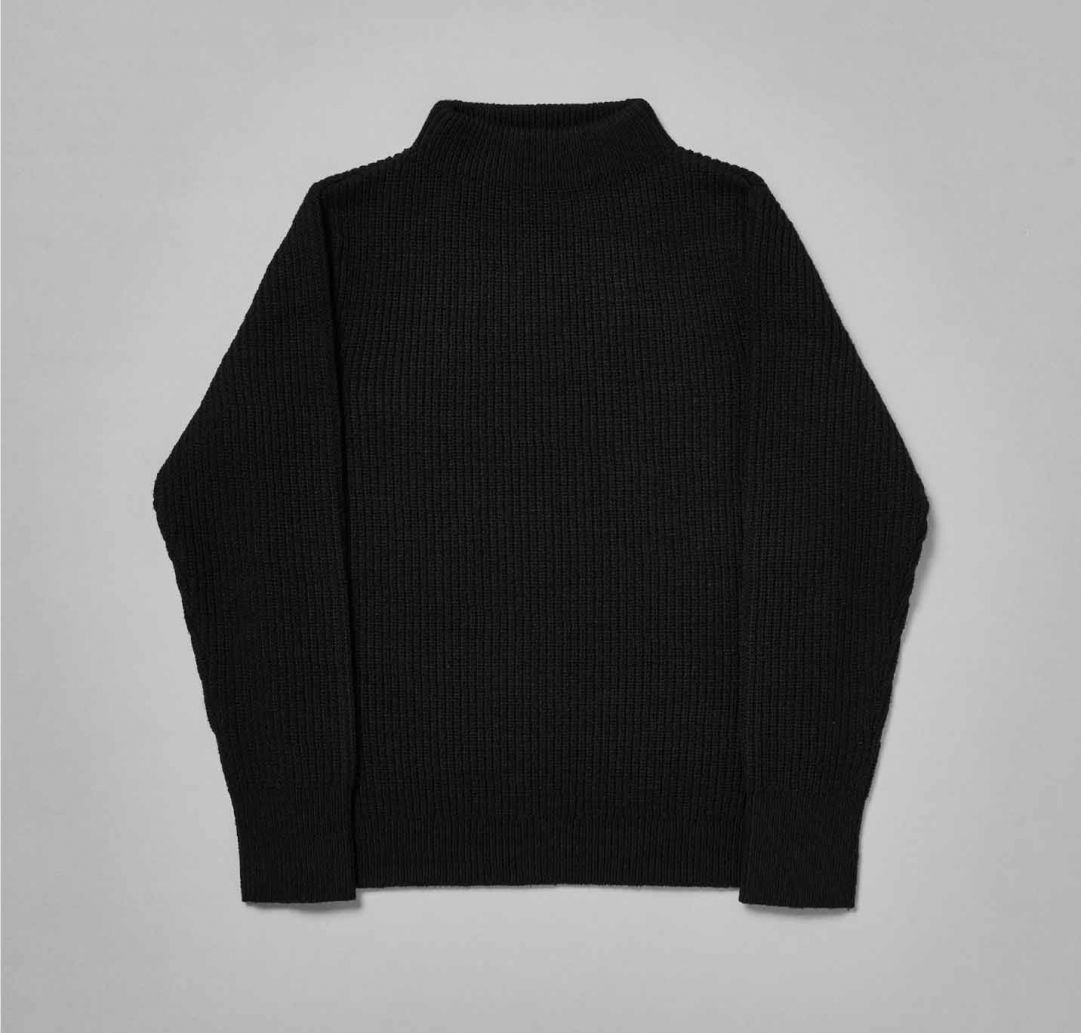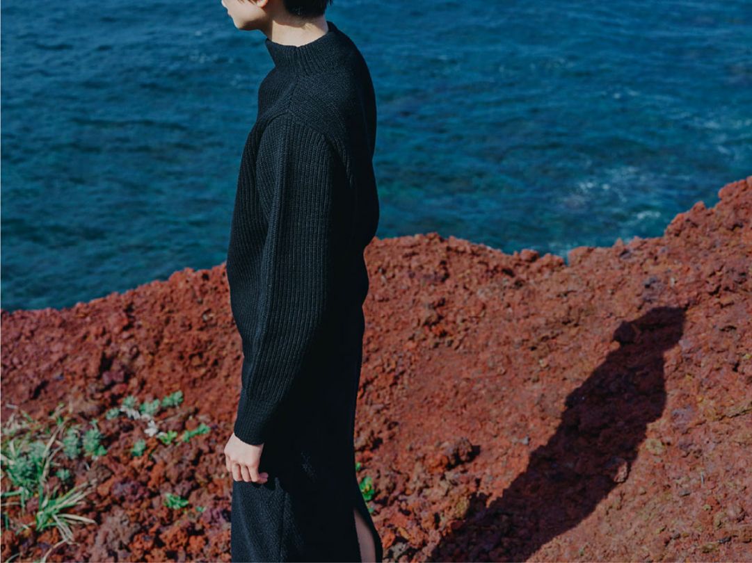 "The Sweater" è stato sviluppato chiedendosi "Qual era l'origine di questo prodotto iconico?" e "Che aspetto avrà in futuro?". E' nato combinando questi nuovi materiali innovativi con lana merino pregiata e cashmere di alta qualità e potrà essere il punto di partenza della ricerca di soluzioni ai problemi ambientali globali. Il colore del maglione, il nero, è stato scelto perché rappresenta la mescolanza di tutti i colori e si dice che sia il colore degli inizi. In questo modo, immaginiamo The Sweater come un collegamento tra l'inizio della lunga storia di questo elemento iconico e gli ultimi sviluppi tecnologici.