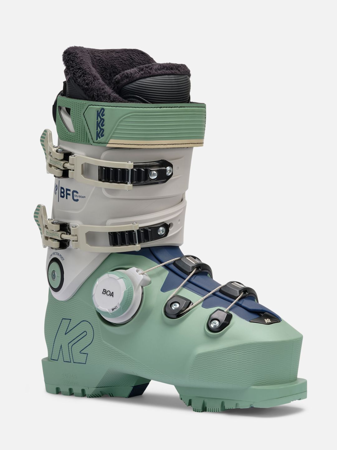 Proseguendo la collaborazione nata fin dagli arbori con BOA® Fit System, anche K2 ridisegna la sua linea di scarponi per offrire una migliore adattabilità grazie a una migliore distribuzione della pressione su tutto il piede e all’eliminazione dei tradizionali punti dolorosi dello scarpone. L’applicazione di questa tecnologia ai modelli della linea BFC "All-mountain" ha portato alla realizzazione di scarponi in TPU, un materiale termoplastico estremamente elastico e resistente alle abrasioni e alle sostanze chimiche, e dotati di un nuovo rivestimento Cushfit (Plus o Pro) in grado di rendere la calzata più agevole possibile. Completano l’attrezzatura le ormai rodate suole in gomma con GripWalk, perfette per camminare dopo una lunga sciata.