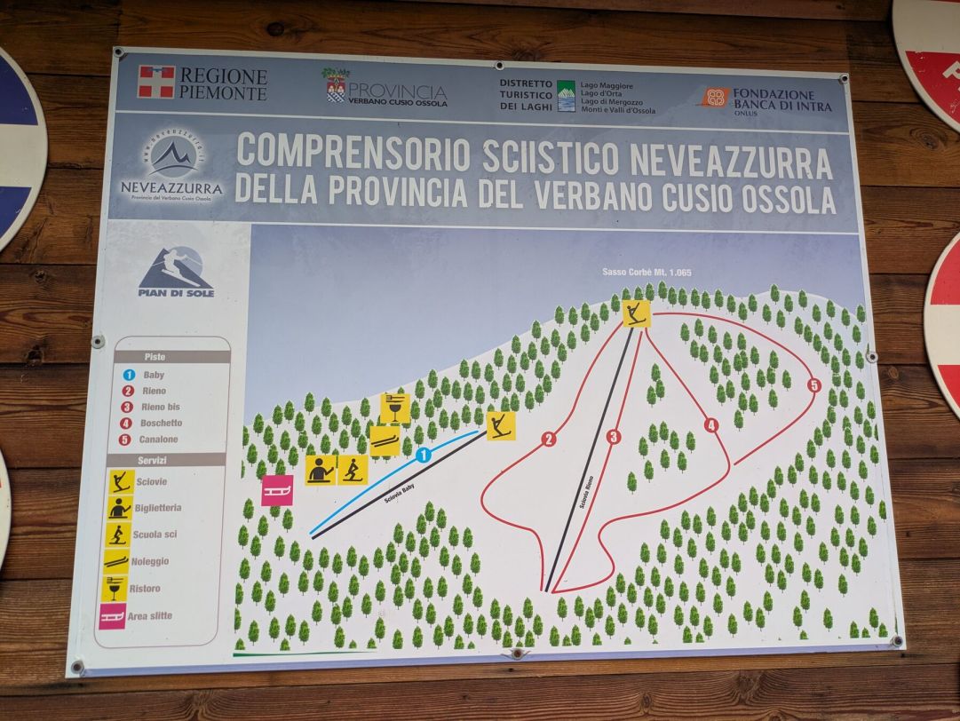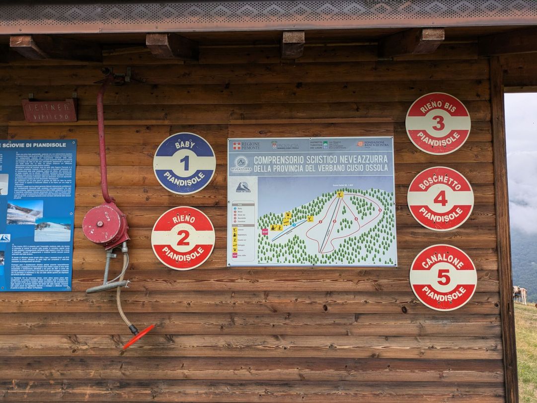 Una grigia giornata di fine luglio ben si concilia con i malinconici ricordi del passato sciistico vista Lago Maggiore dei monti sopra la città di Verbania. A Pian Cavallo il ricordo è più lontano, con le ultime risalite degli skilift avvenute negli anni Novanta e le piste ormai ricoperte dalla vegetazione. Resti di skilift, un vecchio cartellone, alcune paia di sci all'ingresso del ristorante in prossimità delle piste, questo quello che resta del piccolo comprensorio dotato di 3 sciovie. Più a valle, recente è l'addio allo sci di Pian di Sole: nel 2021 le sciovie Rieno e Genzianella sono state chiuse e smantellate definitivamente dopo quasi 40 anni di onorato servizio. Nel nuovo millennio la località, dotandosi di un impianto di innevamento, aveva affrontato tenacemente gli inverni sempre più avari di neve, ritagliandosi un ruolo di primo piano per formare le nuove generazioni di sciatori della zona. A testimoniare il passato sciistico rimane la biglietteria che mette in mostra alcuni oggetti commemorativi, accompagnati da un cartellone che ripercorre la storia del comprensorio sciistico: “La nascita dell’attività degli impianti sciistici di Pian di Sole risale agli anni Sessanta, quando un gruppo di coraggiosi ed entusiasti imprenditori locali, sulla scia del forte sviluppo turistico generatosi intorno agli appena costruiti villaggi “Europa” e “Lago Azzurro”, fonda la Società “Sciovie Premeno Vetta” che da subito installa una sciovia usata proveniente dalla vicina Valsesia, che con una lunghezza di circa 600 metri va a coprire i dolci pendii del versante nord-est del Sasso Corbè. La costruzione di quest’impianto, che con le attrezzature del giorno d’oggi sarebbe quasi banale, rappresentò ai tempi un bell’impegno, se solo si considera che la realizzazione dei plinti in cemento fu eseguita tutta a mano e il trasporto dei materiali a dorso di mulo.