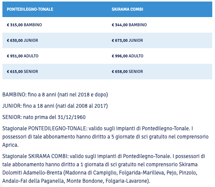 Prezzi Skipass