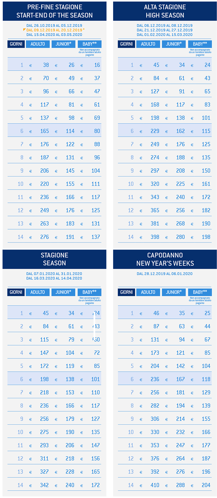 Prezzi Skipass