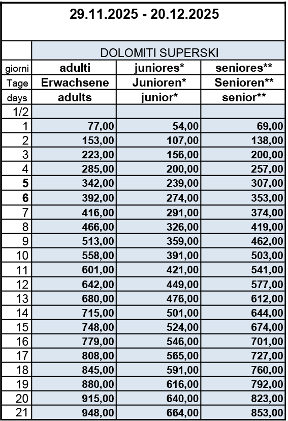 Skipass Pre-Stagione Dolomiti Superski 2025/2026