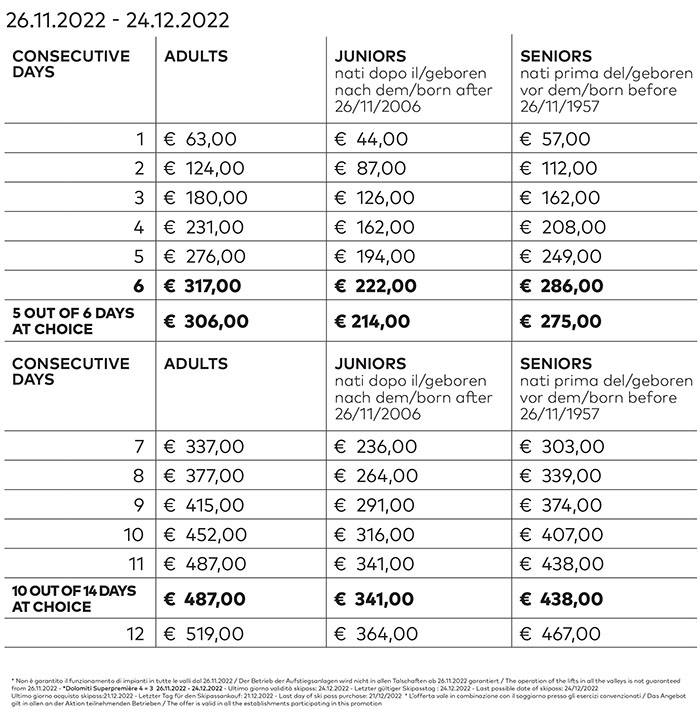 Skipass Inizio Stagione Dolomiti Superski 2022/2023