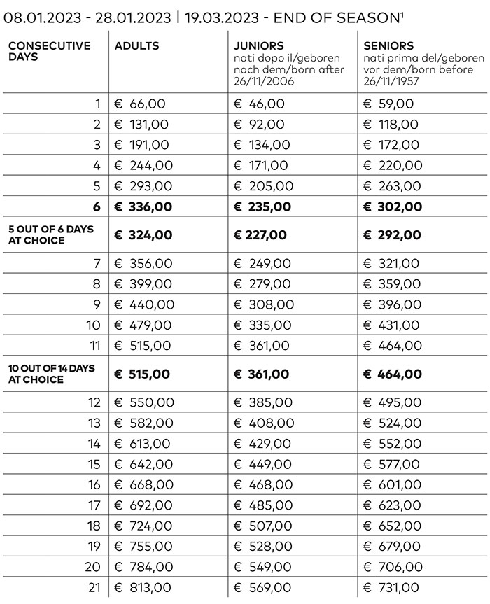 Skipass Alta Stagione Dolomiti Superski 2022/2023