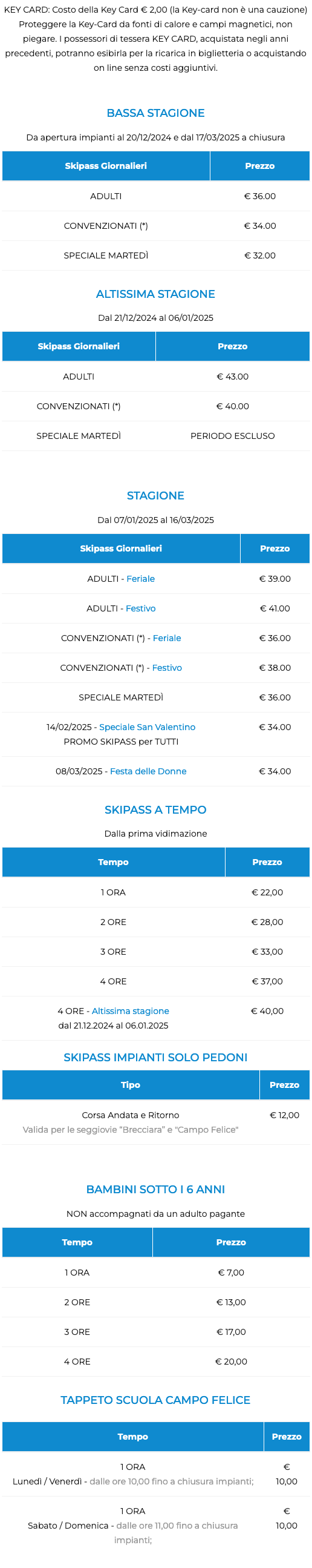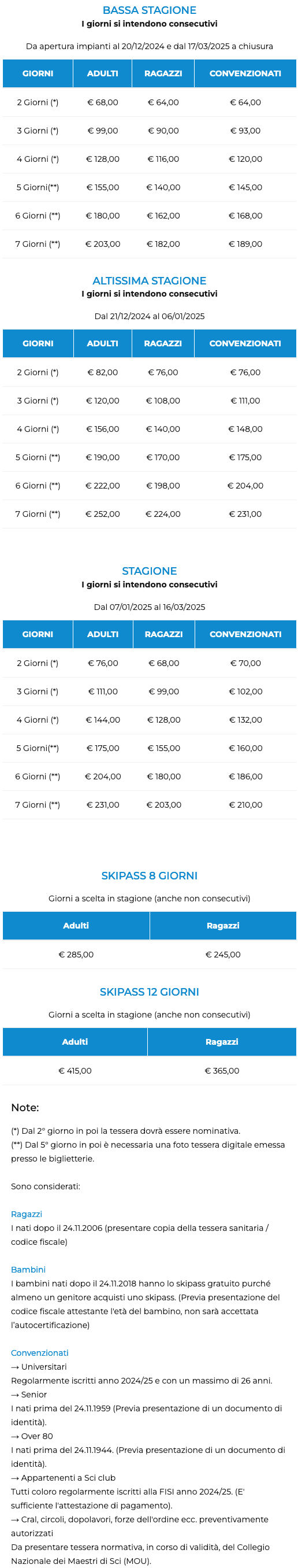Skipass Plurigiornalieri Campo Felice 2024/2025
