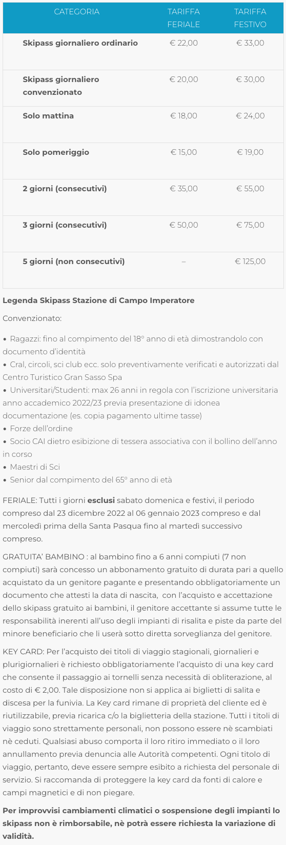 Skipass Invernale Campo Imperatore 2024/2025