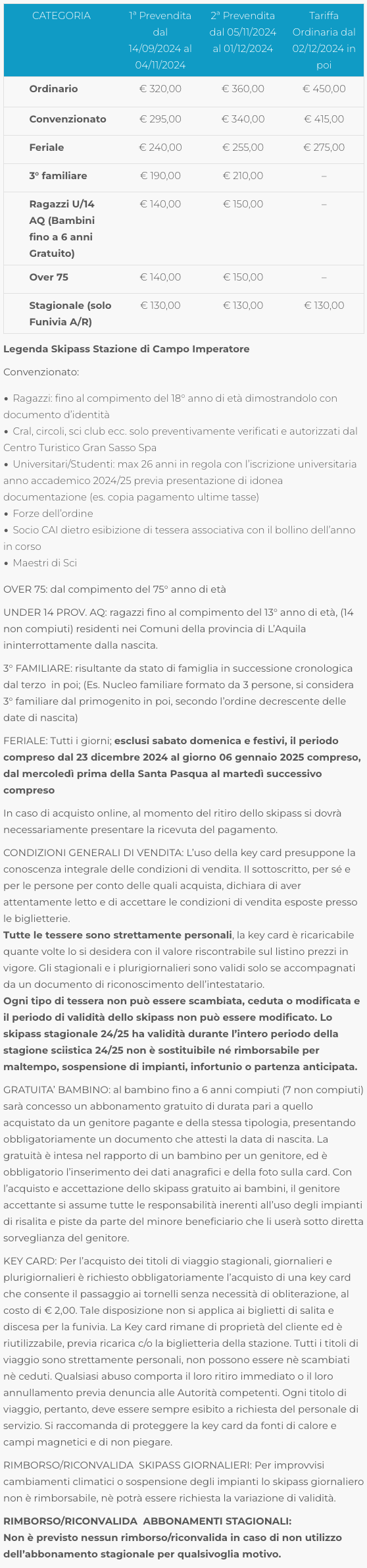 Skipass Stagionale Campo Imperatore 2024/2025