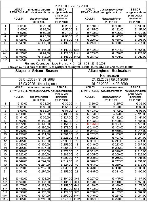 SKIPASS ALPE CERMIS VAL DI FIEMME 2008/2009