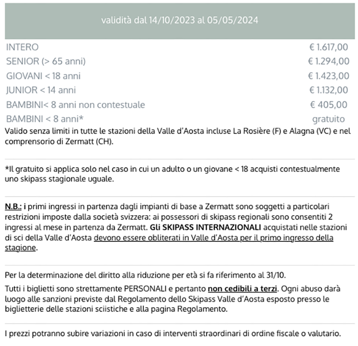 Skipass Regionale Valle dAosta + Zermatt 2024/2025