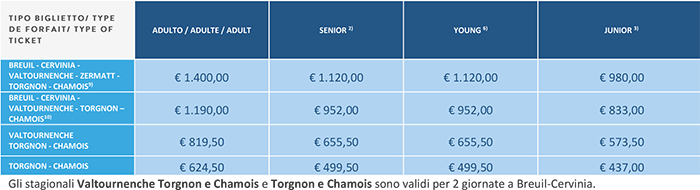 Skipass Cervinia Zermatt Valtournenche 2024/2025