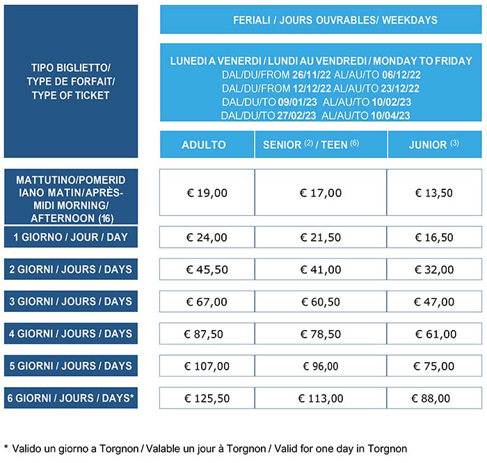 Pluri-giornalieri Valtournenche Chamois e Torgnon 2022/2023