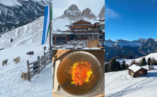 Sono davvero moltissimi i rifugi che troverete sparsi lungo le piste, ideali per riposarsi dopo qualche ora sugli sci e degustare qualcosa di caldo e tipico. Se cercate un’esperienza verace scegliete la “Baita Cuz” a Pozza di Fassa con vista sul Catinaccio, dove potrete mangiare dei tortel di patate e una delle migliori pizze della valle a oltre 2200 m, ma anche il “Rifugio Salei” al Passo Sella, proprio sul confine con la Val Gardena, che vi farà degustare delle enormi Wiener Schnitzel accompagnate da ottime patate saltate. La pausa merenda fatela al “Rifugio Friedrich August”, nella skiarea del Col-Rodella: divenuto celebre per i deliziosi krapfen, qui la favolosa vista si unisce all’incontro con animali davvero speciali, tra cui bovini scozzesi e yack, che si godono anch’essi la lenta e fredda vita dolomitica.