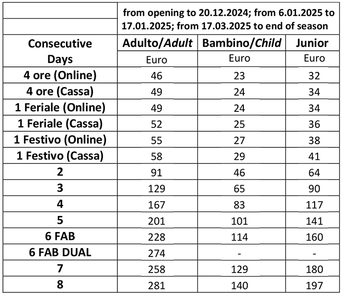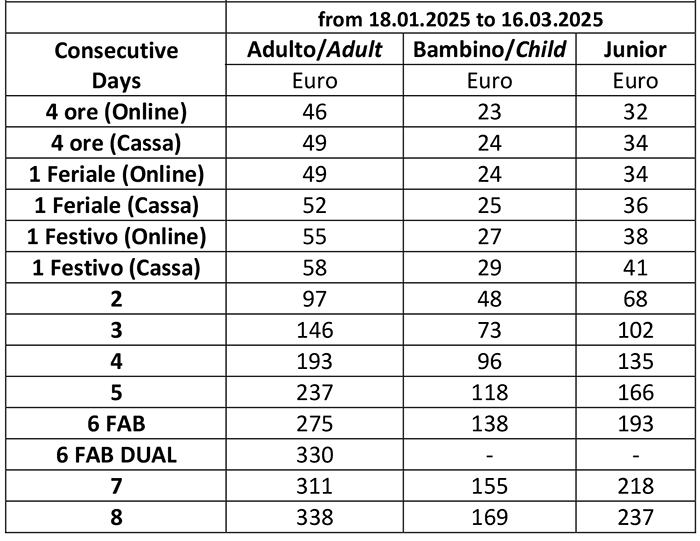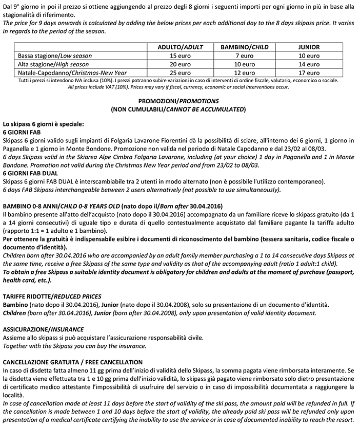Skipass Folgaria Lavarone Alpe Cimbra 2024/2025