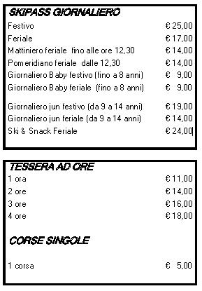 PREZZI SKIPASS Foppolo, Carona, San Simone 2008/2009