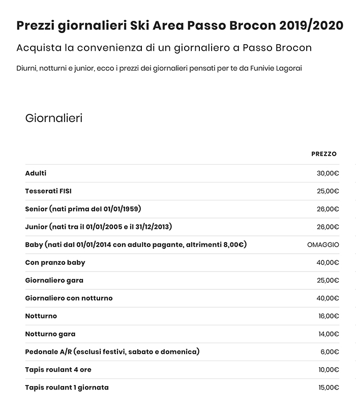 Skipass Lagorai Passo Brocon 2019/2020 plurigiornalieri