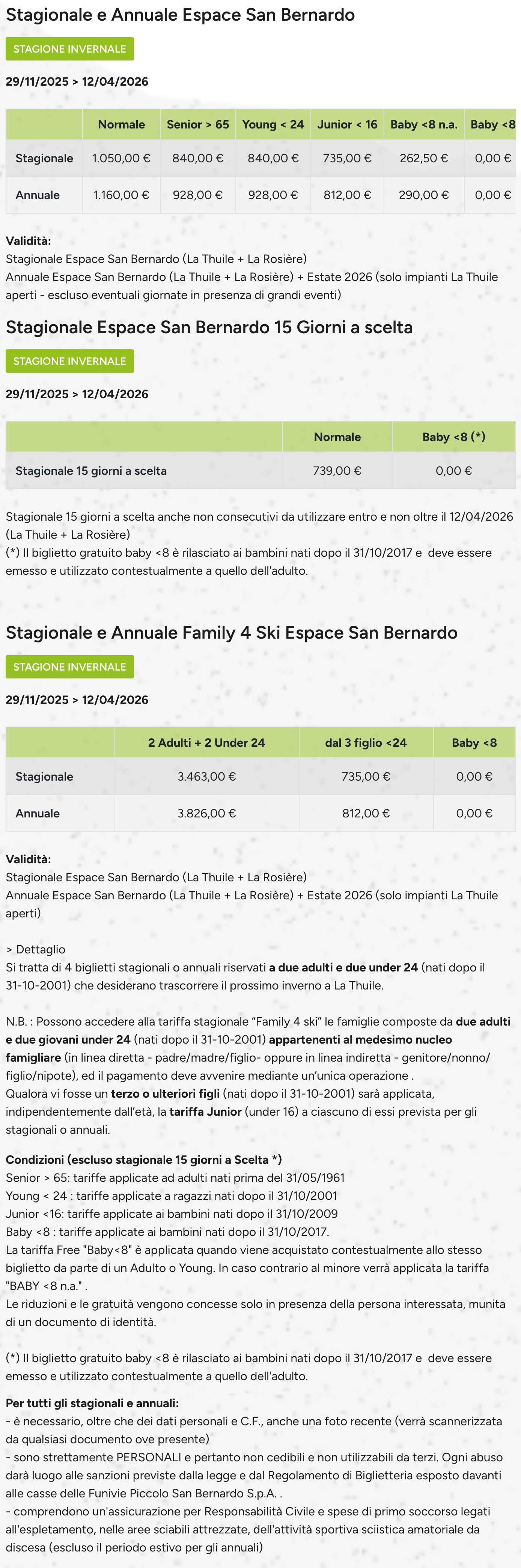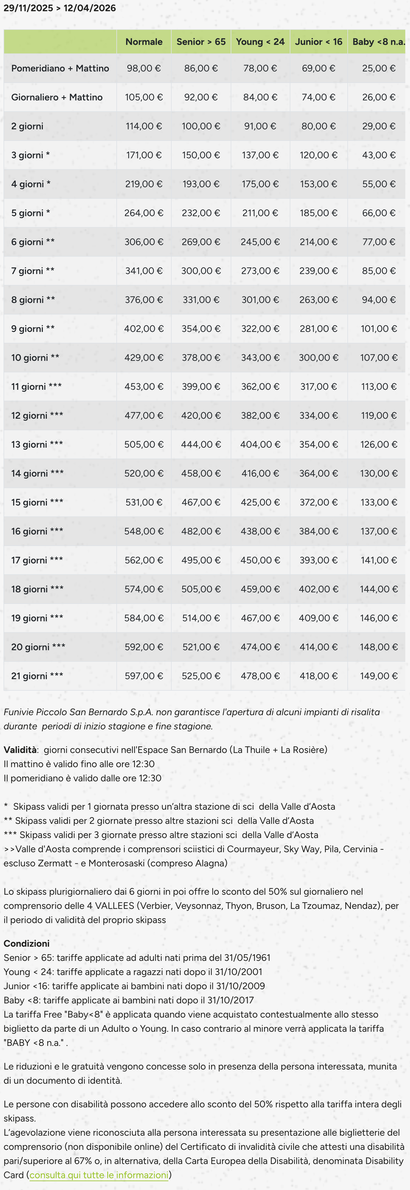 Skipass La Thuile Espace San Bernardo 2025/2026